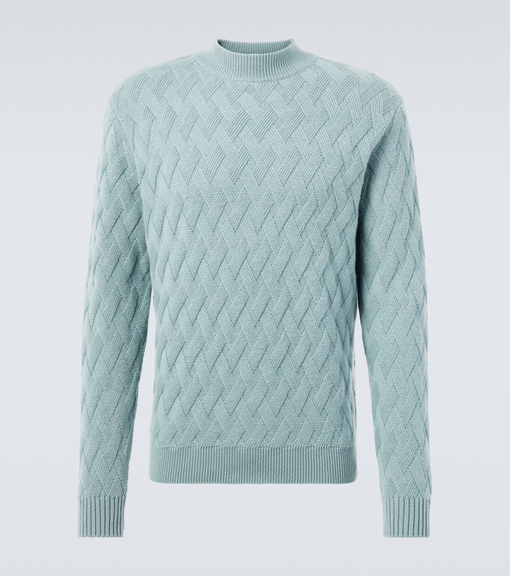 When it comes to knitwear, Allude is an industry expert. This sweater is knitted from soft wool and cashmere and features a charming crisscrossed pattern. Product Details - Material: 70% wool, 30% cashmere - Care instructions: hand wash - Made in China - Designer color name: 31 - Item color: green - Collar: mockneck - Hem: ribbed - Cuff: ribbed - Item number: P01068756 Size & Fit - True to size - Straight fit - Slightly stretchy fabric - Falls to the hip - The model in the picture is 185cm-6'1" and wearing a size L