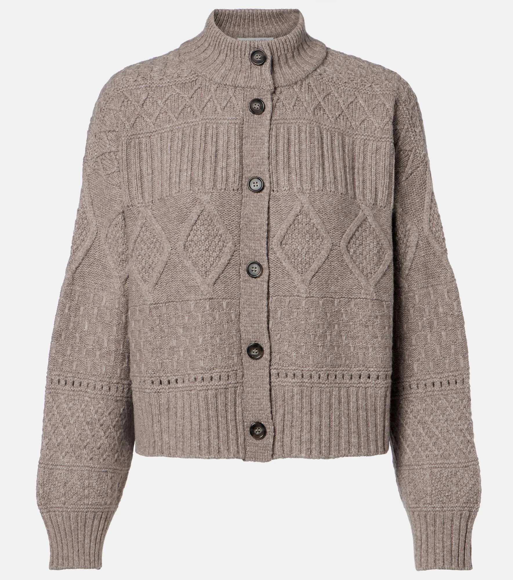 The Amory cardigan from Altuzarra showcases the brand's unparalleled craftsmanship and understated refinement. The piece is crafted from a wool blend and features an intricate cable-knit pattern and a buttoned front. Product Details - Material: 78% wool (merino wool), 22% polyamide - Care instructions: dry clean - Made in Italy - Color: grey - Designer color name: Bone - Item color: gray - Closure: buttoned front - Collar: mockneck - Cuff: ribbed - Hem: ribbed - Item number: P01144228 Size & Fit - True to size - Dropped shoulders - Designed for a loose fit - Slightly stretchy fabric - Falls to the hip - The model seen in the picture is 178cm-5'10" and wearing a size XS