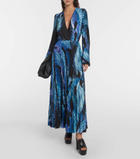 Made in Italy, the Antiparos maxi dress from Altuzzara exhibits a pleated texture, graced with a deep V-neckline and generously flowing wide sleeves. The striking feather print adds a touch of irridescent vibrance. Product Details - Material: 100% polyester - Care instructions: dry clean - Made in Italy - Lining: 100% polyester - Closure: zipped back - Item number: P00820511 Size & Fit - Fits large to size - we recommend trying one size smaller - Cinched waist - Mid-weight material - The model seen in the picture is 178cm-5'10" and wearing a size FR 34