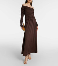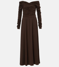 Charlotte off-the-shoulder ruched stretch recycled-jersey maxi dress