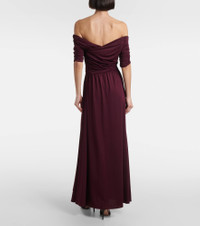 Product Details - Material: 92% polyester, 8% elastane - Care instructions: dry clean - Made in Portugal - Designer color name: Deep Grape - Closure: zipper fastening - Item number: P01018448 Size & Fit - True to size - Off-the-shoulder - Fitted bodice, loose skirt - Stretchy fabric - The model seen in the picture is 178cm-5'10" and wearing a size FR 36