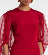 Product Details - Material: 100% silk - Care instructions: dry clean - Made in Italy - Designer color name: Syrah - Item color: red - Lining: 100% polyester - Closure: zipped back - Item number: P01018449 Size & Fit - True to size - Dropped shoulders - Fitted - Stretchy fabric - slit length 25cm-10" - The model seen in the picture is 178cm-5'10" and wearing a size FR 36