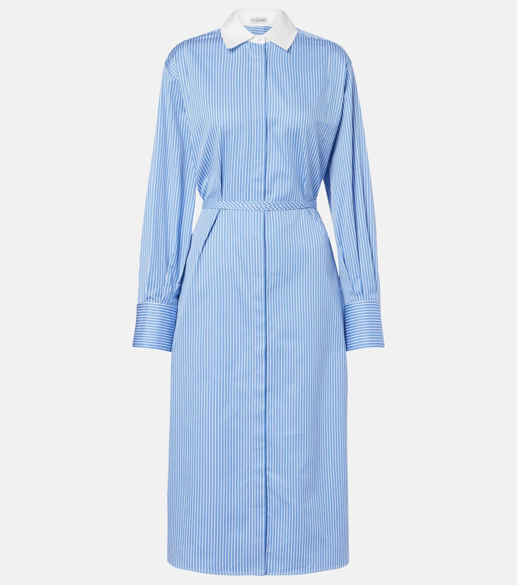 Informed by founder Joseph Altuzarra’s multicultural upbringing, each Altuzarra piece speaks to the power of considered elegance. The Floyd cotton poplin shirt dress is complete with a classic collar, a cinched waist, and a pinstripe motif. Product Details - Material: 100% cotton - Care instructions: dry clean - Made in Italy - Color: blue - Designer color name: Azure Stripe - Material II: 70% cotton, 30% polyester - Collar: classic (Straight point) - Cuff: two buttons - Closure: concealed button placket - Item number: P01144258 Size & Fit - True to size - Loose fit, comes with belt - Non-stretchy fabric - The model seen in the picture is 178cm-5'10" and wearing a size FR 36