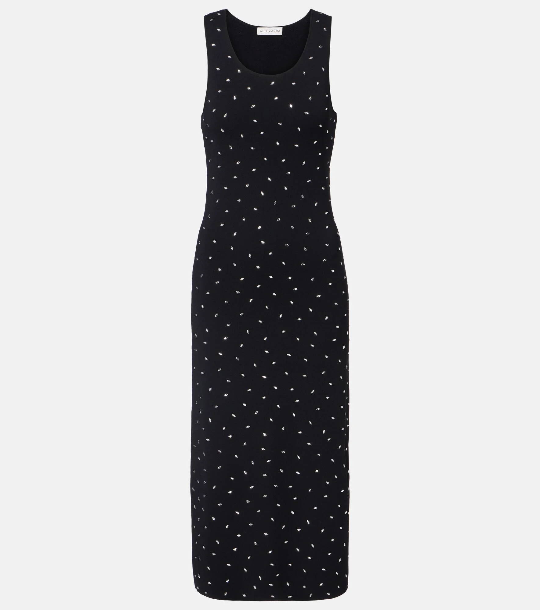 Informed by founder Joseph Altuzarra’s multicultural upbringing, each Altuzarra piece speaks to the power of considered elegance. The Geordie midi dress is a jersey style embellished with dazzling crystals for an eye-catching finish. Product Details - Material: 94% viscose, 6% polyester - Care instructions: hand wash cold - Made in China - Designer color name: Black - Item color: black - Hardware color: silver - Item number: P01134304 Size & Fit - True to size - Fitted - Stretchy fabric - The model seen in the picture is 178cm-5'10" and wearing a size XS