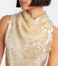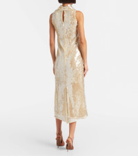 Informed by founder Joseph Altuzarra’s multicultural upbringing, each Altuzarra piece speaks to the power of considered elegance. The Noor midi dress is shaped into a refined straight silhouette with a high neck, embellished with all-over sequins and a contrasting tulle lining. Product Details - Material: 67% polyester, 23% polyamide, 10% metallic fibres - Care instructions: dry clean - Made in Italy - Color: yellow - Designer color name: Macadamia - Item color: yellow - Lining: 100% silk - Collar: cowl neck - Closure: hook-fastening back - Item number: P01144210 Size & Fit - Fits large to size - we recommend trying one size smaller - Cinched waist - Non-stretchy fabric - The model seen in the picture is 178cm-5'10" and wearing a size FR 36