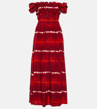 Printed off-shoulder silk midi dress