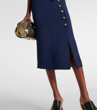 Product Details - Material: 71% acetate, 29% viscose - Care instructions: dry clean - Made in Italy - Designer color name: Berry Blue - Lining: 67% viscose, 33% polyester - Closure: invisible zipper - Belt loops - Self-tie belt - Item number: P00950022 Size & Fit - True to size - Cinched waist - Elasticated waist - Non-stretchy fabric - The model seen in the picture is 178cm-5'10" and wearing a size FR 36
