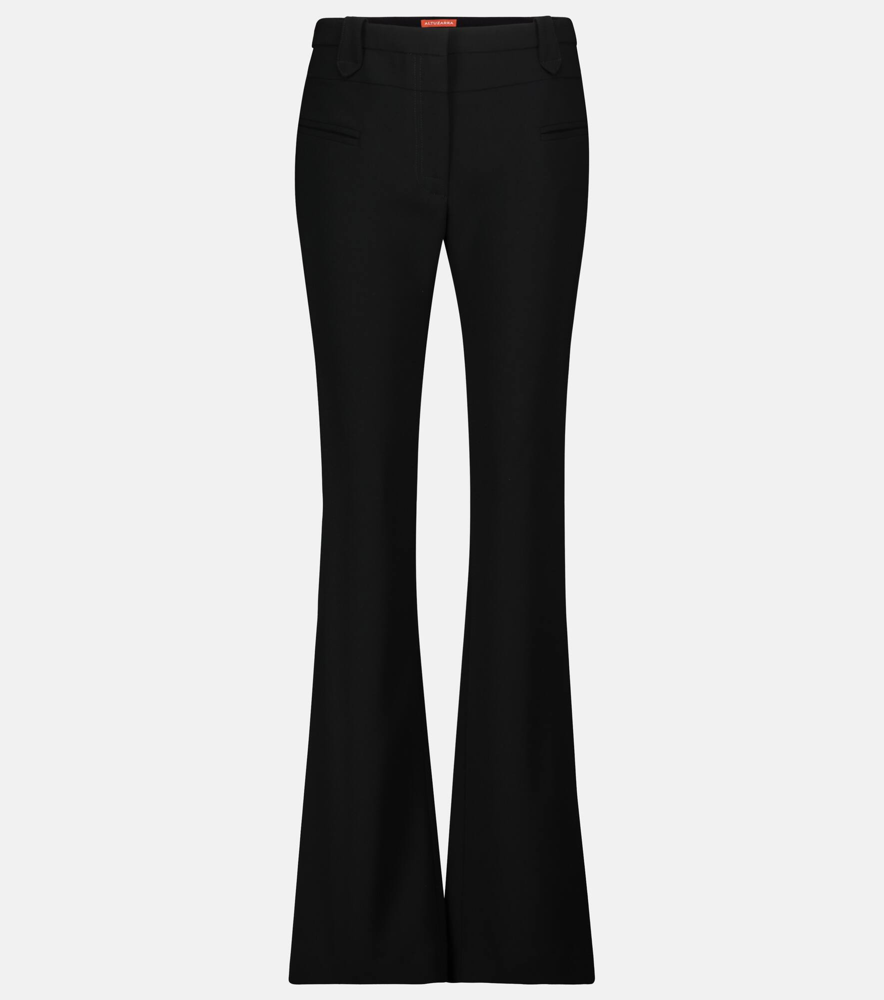 Consider the black Serge pants from Altuzarra a timeless suiting staple. The mid-rise bootcut pair flatteringly define natural contours of the thighs and gracefully flare along the calves. Best of all, their wrinkle-resistant fabric is perfectly suited to business travel. Product Details - Material: 69% triacetate, 31% polyester - Care instructions: dry clean - Made in Italy - Lining: 64% viscose, 36% polyester, partially lined - Designer color name: Black - Closure: zipper fly, button and hook fastenings - Belt loops - Pockets: slit pockets - Item number: P00528161 Size & Fit - Fits small to size - we recommend trying one size larger - Mid-weight material - Slim-leg with a flared hem - Inseam length approx: 86,0cm-34" - The model seen in the picture is 178cm-5'10" and wearing a size FR 38