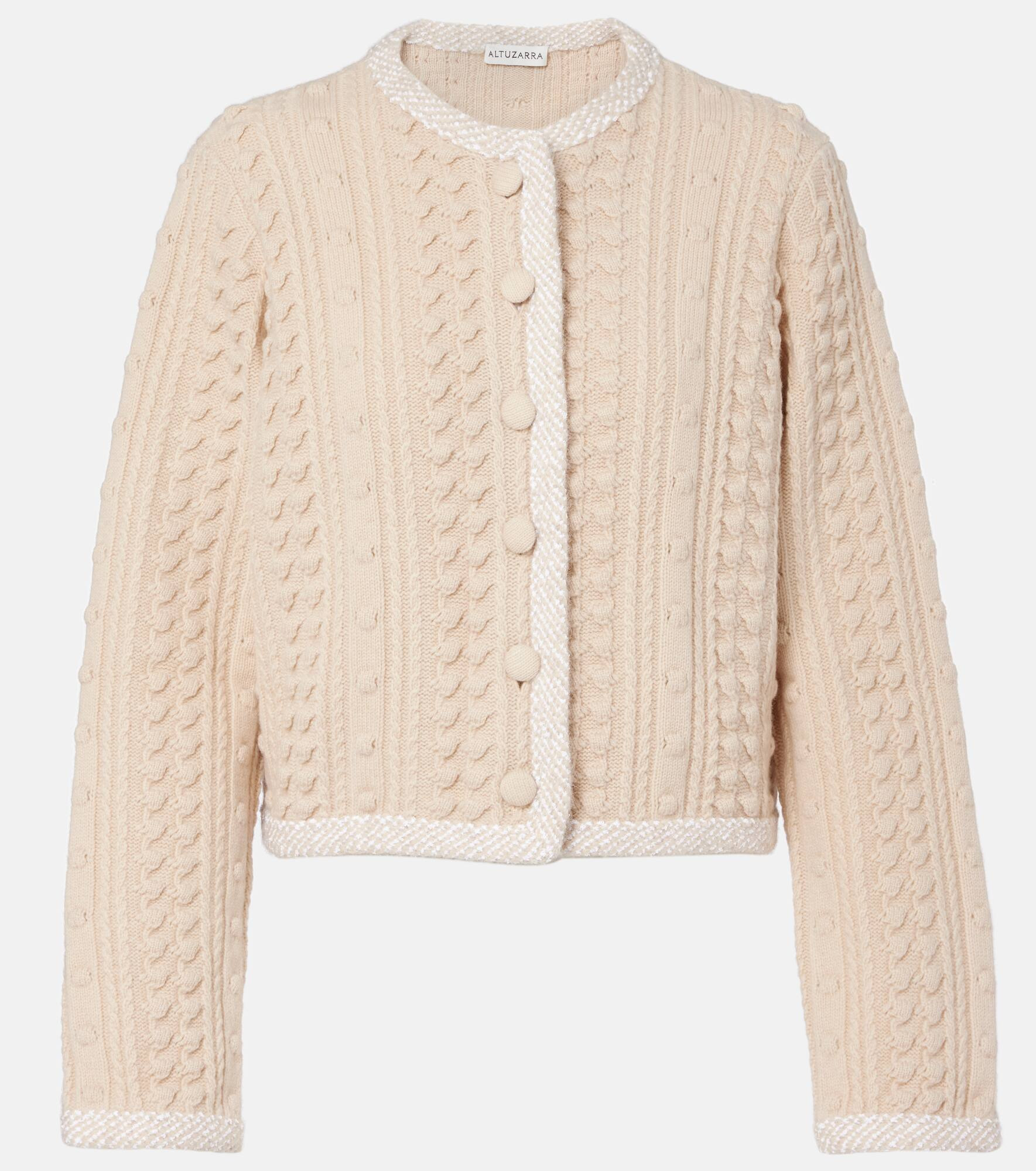 Informed by founder Joseph Altuzarra’s multicultural upbringing, each Altuzarra piece speaks to the power of considered elegance. The Stef cardigan is made from a blend of wool from merino sheep and showcases an intricate pattern and a buttoned front. Product Details - Material: 86% wool, 6% polyamide, 6% viscose, 1% polyacrylic, 1% alpaca wool - Care instructions: dry clean - Made in China - Designer color name: Tapioca - Item color: beige - Closure: buttoned front - Item number: P01070882 Size & Fit - True to size - Straight fit - Slightly stretchy fabric - Slightly cropped - The model seen in the picture is 178cm-5'10" and wearing a size XS