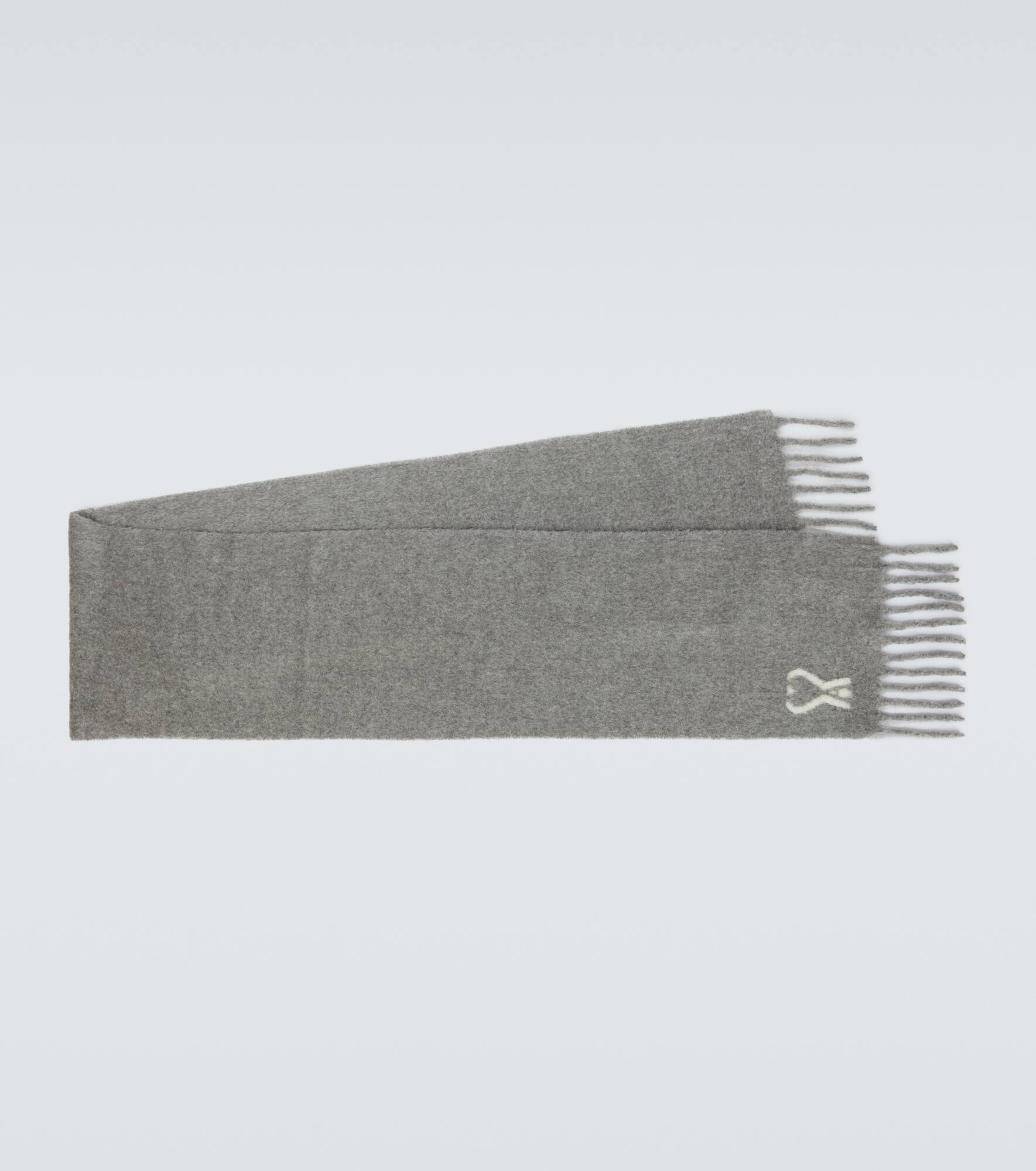 A symbol of Ami Paris since 2016, the Ami de Cœur logo is named after the French expression for "friend of the heart". This scarf is crafted from a soft blend of alpaca and wool and finished with fringes. Product Details - Material: 72% alpaca wool, 18% polyamide, 10% wool - Care instructions: dry clean - Made in Italy - Designer color name: Gris - Item color: gray - Item number: P01069395 Size & Fit - Length 235cm-92.5" - Width 33cm-13" - Length of fringe 12cm-4.5"