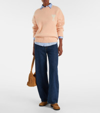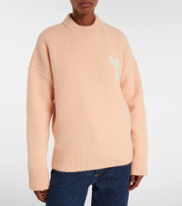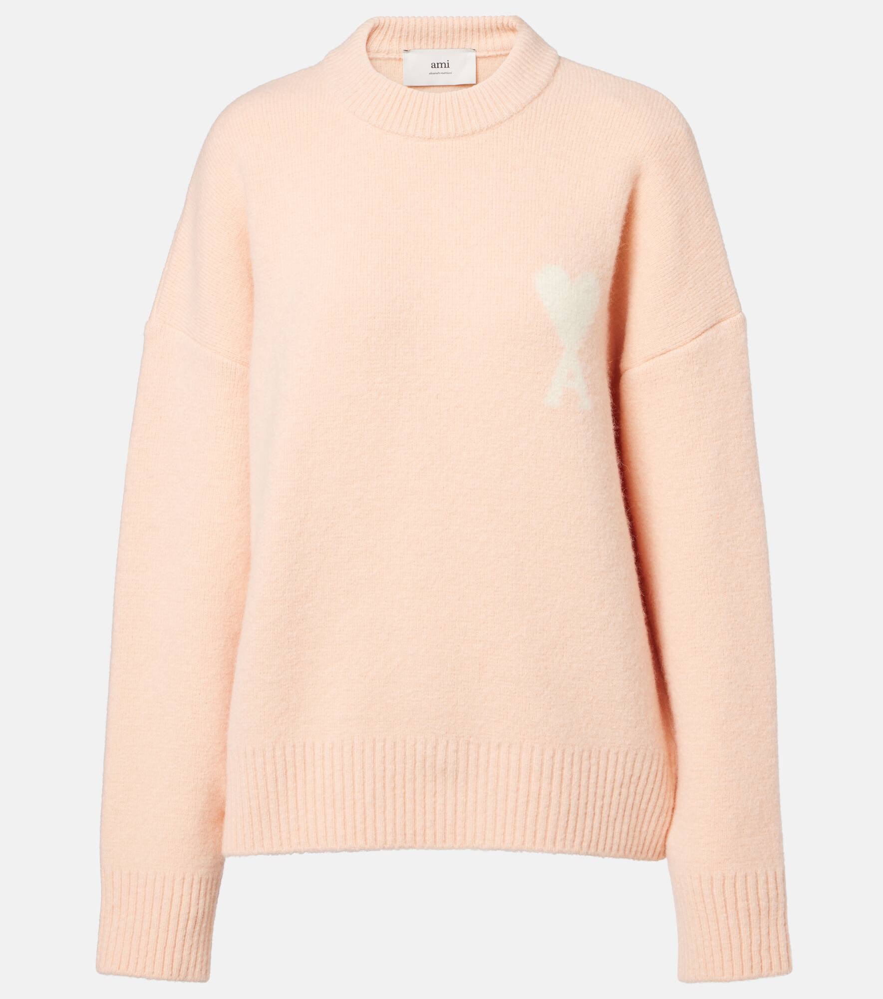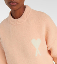 Ami Paris' Parisian nonchalance is the key ingredient for authentic and cool style. Knit from a plush alpaca and wool blend, this sweater features dropped shoulders, warming ribbed-knit trims, and is accented with the now-iconic Ami de Cœur motif. Product Details - Material: 50% alpaca wool, 25% wool, 23% polyamide, 2% elastane - Care instructions: hand wash - Made in Portugal - Designer color name: Poudre - Item color: pink - Collar: crewneck - Sleeves: dropped shoulder - Cuff: ribbed - Hem: ribbed - Item number: P01074072 Size & Fit - True to size - Dropped shoulders - Designed for a loose fit - Slightly stretchy fabric - Falls below the hip - The model seen in the picture is 178cm-5'10" and wearing a size XS