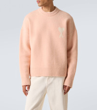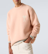 Ami Paris' Parisian nonchalance is the key ingredient for authentic and cool style. Knit from a plush alpaca and wool blend, this sweater features dropped shoulders, warming ribbed-knit trims, and is accented with the now-iconic Ami de Cœur motif. Product Details - Material: 50% alpaca wool, 25% wool, 23% polyamide, 2% elastane - Care instructions: hand wash - Made in Portugal - Designer color name: Poudre/Ecru - Item color: pink, white - Collar: crewneck - Cuff: ribbed - Hem: ribbed - Item number: P01069436 Size & Fit - True to size - Dropped shoulders - Designed for a loose fit - Stretchy fabric - Falls to the hip - The model in the picture is 185cm-6'1" and wearing a size L