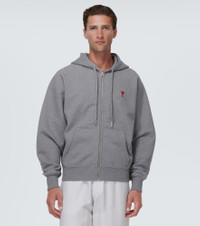 A symbol of Ami Paris since 2016, the Ami de Cœur logo is named after the French expression for "friend of the heart." The motif appears on this gray cotton jersey hoodie, which has a drawstring hood and a kangaroo pocket. Product Details - Material: 1% elastane, 99% cotton - Made in Portugal - Drawstring hood - Designer color name: Heather Grey - Closure: zipped front - Pockets: kangaroo pocket - Care instructions: machine wash at 30 degrees - Item number: P00832340 Size & Fit - True to size - Designed for a loose fit - Heavy material - Falls to the hip - The model in the picture is 185cm-6'1" and wearing a size M