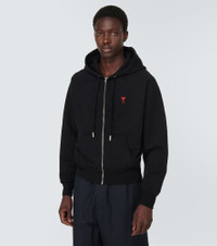 A symbol of Ami Paris since 2016, the Ami de Cœur logo is named after the French expression for "friend of the heart." The motif is embroidered on this zip-front hoodie made from cotton jersey. Product Details - Material: 1% elastane, 99% cotton - Made in Portugal - Drawstring hood - Designer color name: Black - Closure: zipped front - Pockets: kangaroo pocket - Care instructions: machine wash at 30 degrees - Item number: P00832339 Size & Fit - True to size - Designed for a loose fit - Non-stretchy fabric - Falls to the hip - The model in the picture is 185cm-6'1" and wearing a size M