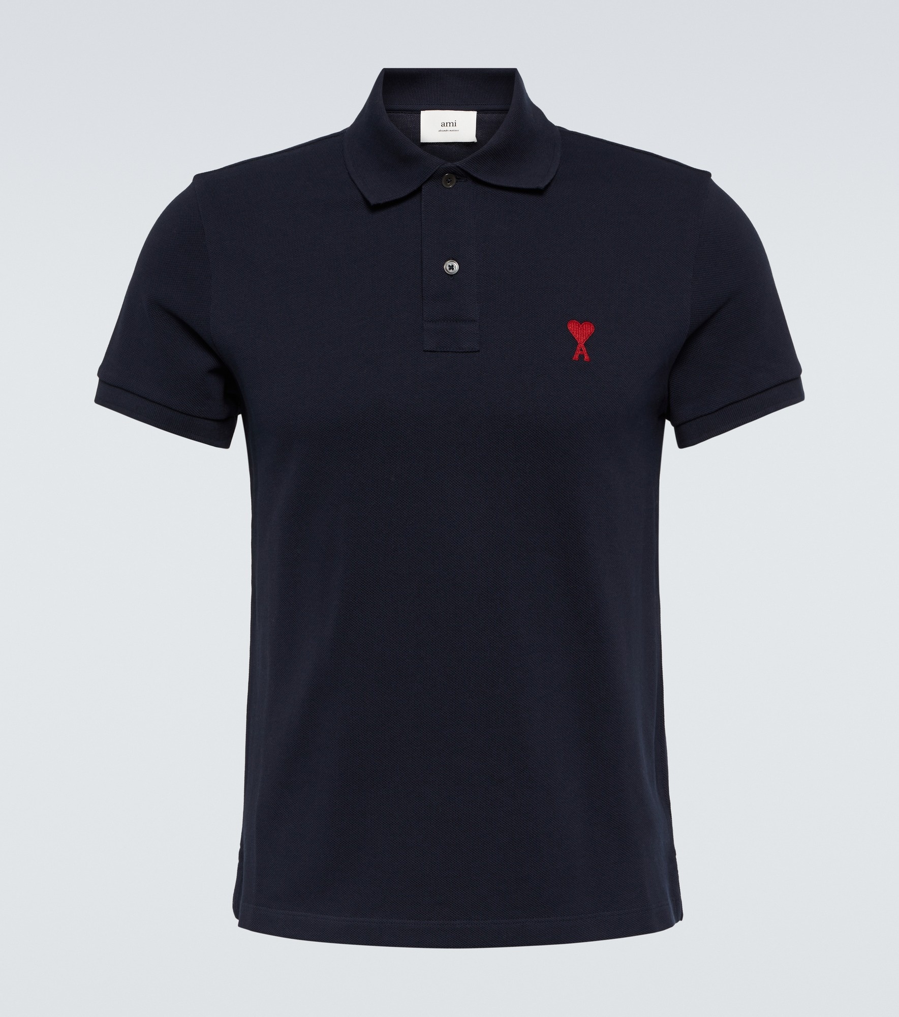 A symbol of Ami Paris since 2016, the Ami de Cœur logo is named after the French expression for "friend of the heart". This preppy navy-blue Polo T-shirt is made from pure cotton. Product Details - Material: 100% cotton - Care instructions: machine wash at 30 degrees - Made in Portugal - Designer color name: Night Blue - Item number: P00832235 Size & Fit - True to size - Straight fit - Mid-weight material - Falls to the hip - The model in the picture is 185cm-6'1" and wearing a size M