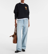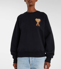 Ami Paris' Parisian nonchalance is the key ingredient for authentic and cool style. Made from cotton, this sweatshirt features a crew neckline and is designed for a loose fit, accented with the now-iconic Ami de Cœur motif. Product Details - Material: 100% cotton - Care instructions: machine wash at 30 degrees - Made in Portugal - Designer color name: Noir - Item color: black - Trim: 98% cotton, 2% elastane - Collar: crewneck - Cuff: elasticated - Hem: elasticated - Item number: P01074079 Size & Fit - True to size - Designed for a loose fit - Non-stretchy fabric - Falls below the hip - The model seen in the picture is 178cm-5'10" and wearing a size XS