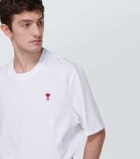 A symbol of Ami Paris since 2016, the Ami de Cœur logo is named after the French expression for "friend of the heart". This crewneck T-shirt is made from organically cultivated cotton for a relaxed fit and features logo embroidery. Product Details - Material: 100% organic cotton - Care instructions: machine wash at 30 degrees - Designer color name: White - Item number: P00832177 Size & Fit - True to size - Designed for a loose fit - Mid-weight material - Falls below the hip - The model in the picture is 185cm-6'1" and wearing a size M