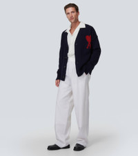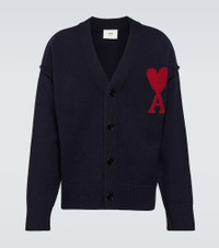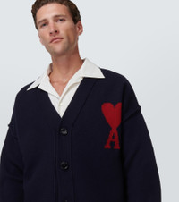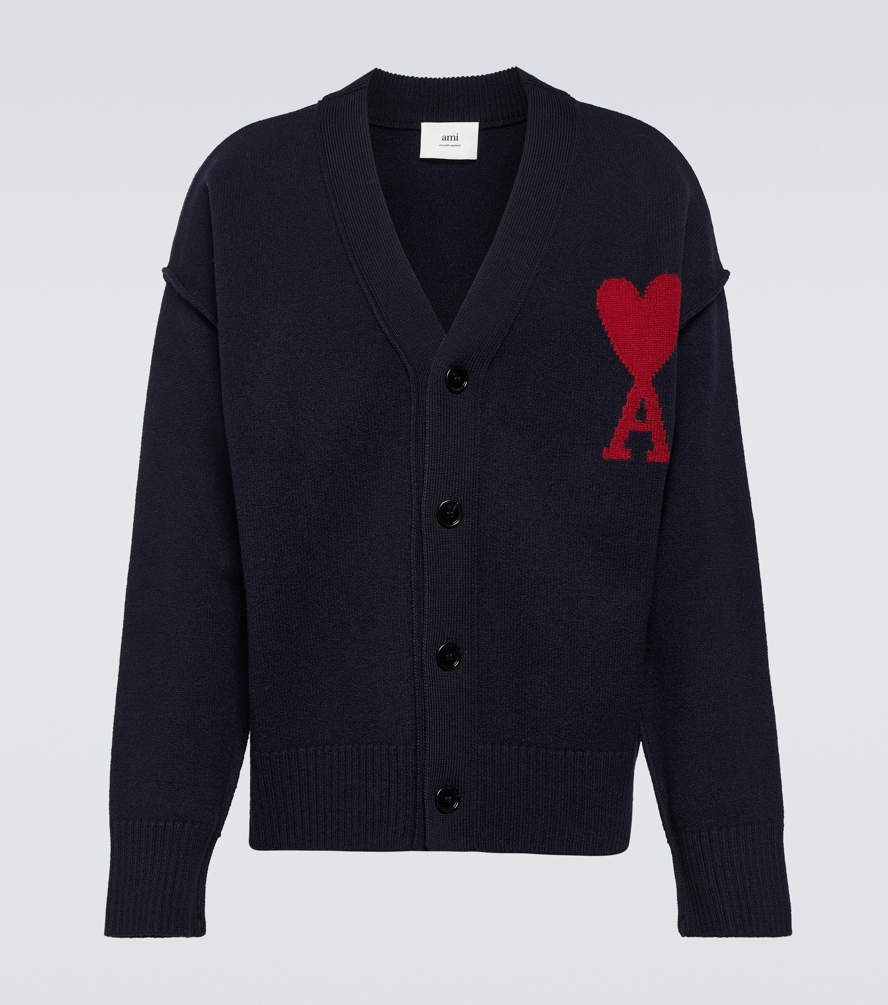 A symbol of Ami Paris since 2016, the Ami de Cœur logo is named after the French expression for "friend of the heart". Knitted from virgin wool, this navy blue cardigan features comes in a relaxed silhouette. Product Details - Care instructions: hand wash - Made in Portugal - Closure: buttoned front - Material: 100% wool - Item number: P00832349 Size & Fit - True to size - Dropped shoulders - Designed for a loose fit - Slightly stretchy fabric - Falls below the hip - The model in the picture is 185cm-6'1" and wearing a size M