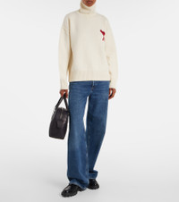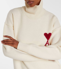 A symbol of Ami Paris since 2016, the Ami de Cœur logo is named after the French expression for "friend of the heart". The iconic motif appears on this turtleneck sweater, made from warm virgin wool. Product Details - Material: 100% virgin wool - Care instructions: hand wash - Made in Italy - Designer color name: Ecru Rouge - Item color: white - Collar: turtleneck - Cuff: ribbed - Hem: ribbed - Item number: P01074131 Size & Fit - True to size - Dropped shoulders - Designed for a loose fit - Slightly stretchy fabric - Falls below the hip - The model seen in the picture is 178cm-5'10" and wearing a size XS