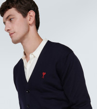 A symbol of Ami Paris since 2016, the Ami de Cœur logo is named after the French expression for "friend of the heart". This wool cardigan features a buttoned front and ribbed-knit cuffs and waistband. Product Details - Material: 100% wool (merino wool) - Care instructions: hand wash - Made in Portugal - Designer color name: Night Blue - Item number: P00832329 Size & Fit - True to size - Dropped shoulders - Straight fit - Mid-weight material - Falls to the hip - The model in the picture is 185cm-6'1" and wearing a size M