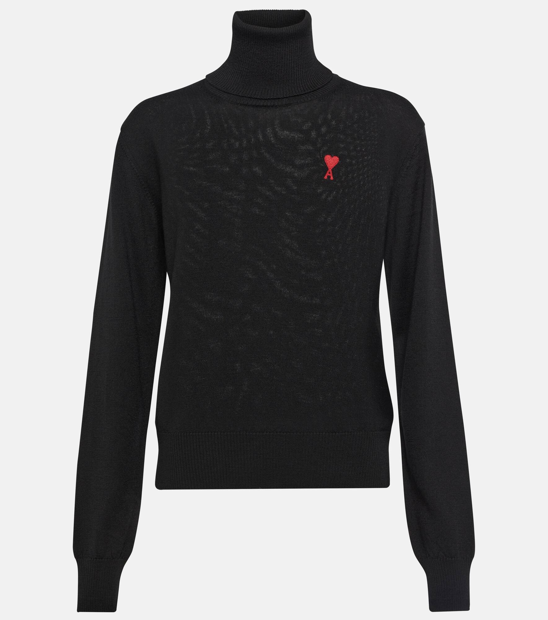 Turn to Ami Paris for outstanding wardrobe staples, such as this turtleneck sweater. It's knitted from pure wool for guaranteed warmth and features the brand's Ami De Cœur motif on the chest. Product Details - Care instructions: hand wash - Made in Portugal - Material: 100% wool - Designer color name: Black - Item number: P00838912 Size & Fit - True to size - Designed for a loose fit - Mid-weight material - Falls to the hip - The model seen in the picture is 178cm-5'10" and wearing a size XS