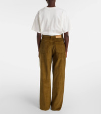 Ami Paris' Parisian nonchalance is the key ingredient for authentic and cool style. A timeless wardrobe staple, these pants are crafted from soft cotton corduroy with a flattering wide-leg silhouette and classic four-pocket styling. Product Details - Material: 100% cotton - Care instructions: machine wash at 30 degrees - Made in Portugal - Designer color name: Bronze - Item color: green - Closure: zipper fly, button fastening - Pockets: side slit pockets, back pockets - Belt loops - Item number: P01073976 Size & Fit - Fits large to size - we recommend trying one size smaller - Non-stretchy fabric - Wide-leg - The model seen in the picture is 178cm-5'10" and wearing a size XXS