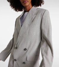 Product Details - Material: 100% wool - Closure: double-breasted buttoned front - Pockets: breast pocket, flap pockets, internal pockets - Contains non-textile parts of animal origin - Care instructions: dry clean - Made in Romania - Designer color name: Light Heather Grey - Lining: 50% cotton, 50% polyester - Sleeve lining: 54% acetate, 45% viscose, 1% polyester - Pocket lining: 65% polyester, 35% cotton - Item number: P00914283 Size & Fit - Fits large to size - we recommend trying one size smaller - Shoulder pad inserts - Designed for a loose fit - Non-stretchy fabric - Falls below the hip - The model seen in the picture is 178cm-5'10" and wearing a size FR 34