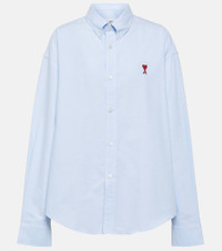 A symbol of Ami Paris since 2016, the Ami de Cœur logo is named after the French expression for "friend of the heart". Perfectly oversized, this shirt is the epitome of casual-cool aesthetics combined with comfort. Product Details - Material: 100% cotton - Care instructions: machine wash at 30 degrees - Made in Poland - Designer color name: Sky Blue - Closure: buttoned front - Item number: P00838922 Size & Fit - True to size - Fits large to size - we recommend trying one size smaller - Dropped shoulders - Designed for a loose fit - Falls below the hip - The model seen in the picture is 178cm-5'10" and wearing a size XS