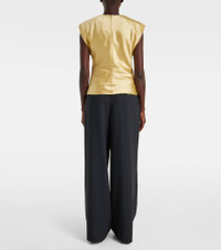 Ami Paris' Parisian nonchalance is the key ingredient for authentic and cool style. Made for the spotlight, this elegant satin top features cap sleeves and is finished with an invisible zip closure. Product Details - Material: 95% polyester, 5% elastane - Care instructions: dry clean - Made in Romania - Designer color name: Anis - Item color: yellow - Lining: 100% polyester - Trim: 59% viscose, 40% cotton, 1% polyester - Closure: invisible zipper - Item number: P01074083 Size & Fit - True to size - Shoulder pad inserts - Cinched waist - Non-stretchy fabric - Slightly cropped - The model seen in the picture is 178cm-5'10" and wearing a size FR 36