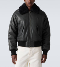Ami Paris' designs boast refinement and endless styling potential. This bomber jacket is made from supple leather with a detachable collar in plush shearling, a zipped front, and ribbed trims. Product Details - Material: 100% lamb leather - Care instructions: specialist clean - Made in Turkey - Designer color name: Anthracite - Item color: gray, black - Trim: 100% shearling - Lining: 50% cotton, 50% polyester - Pocket lining: 100% cotton - Material II: 50% acrylic, 50% wood - Filling: 100% polyester - Contains non-textile parts of animal origin - Hardware color: silver - Closure: two-way zipped front - Pockets: snap-buttoned pockets - Collar: classic (Straight point) - Detachable collar - Cuff: ribbed - Hem: ribbed - Includes: dust bag - Item number: P01069446 Size & Fit - True to size - Dropped shoulders - Designed for a loose fit - Elasticated hem - Non-stretchy fabric - Slightly cropped - The model in the picture is 185cm-6'1" and wearing a size L
