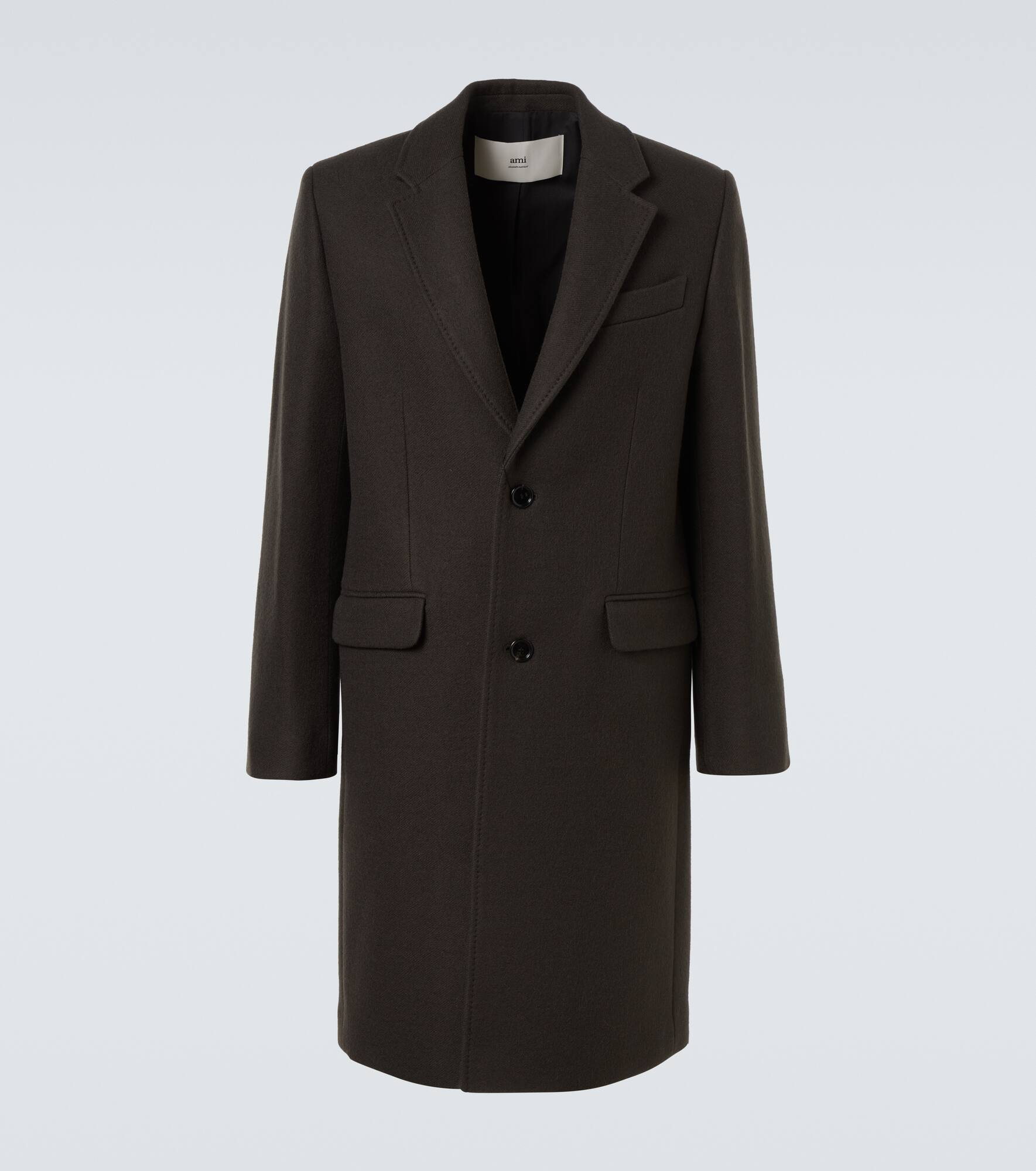 Ami Paris' Parisian nonchalance is the key ingredient for authentic and cool style. Made from virgin wool, this single-breasted coat features a notched lapel, flap, and slant pockets. Product Details - Material: 100% virgin wool - Care instructions: dry clean - Made in Moldova - Designer color name: Anthracite - Item color: gray - Lining: 50% cotton, 50% polyester - Sleeve lining: 54% acetate, 45% viscose, 1% polyester - Closure: single-breasted (two buttons) - Cuff: four buttons - Vent: single - Pockets: flap pockets, slant pocket - Item number: P01069438 Size & Fit - True to size - Shoulder pad inserts - Straight fit - Non-stretchy fabric - The model in the picture is 185cm-6'1" and wearing a size IT 50