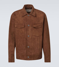 Ami Paris' Parisian nonchalance is the key ingredient for authentic and cool style. Crafted from supple suede, this design features snap button-front closure engraved with the brand’s name, along with flap and slit pockets for a refined look. Product Details - Material: 100% goat leather (suede) - Care instructions: specialist clean - Made in Turkey - Designer color name: Noisette - Item color: brown - Pocket lining: 100% cotton - Contains non-textile parts of animal origin - Collar: classic (Straight point) - Pockets: flap chest pockets, side slit pockets - Closure: snap-buttoned front - Cuff: buttoned - Adjustable tabs at the waist - Item number: P01069452 Size & Fit - Fits large to size - we recommend trying one size smaller - Straight fit - Non-stretchy fabric - Falls to the hip - The model in the picture is 185cm-6'1" and wearing a size M