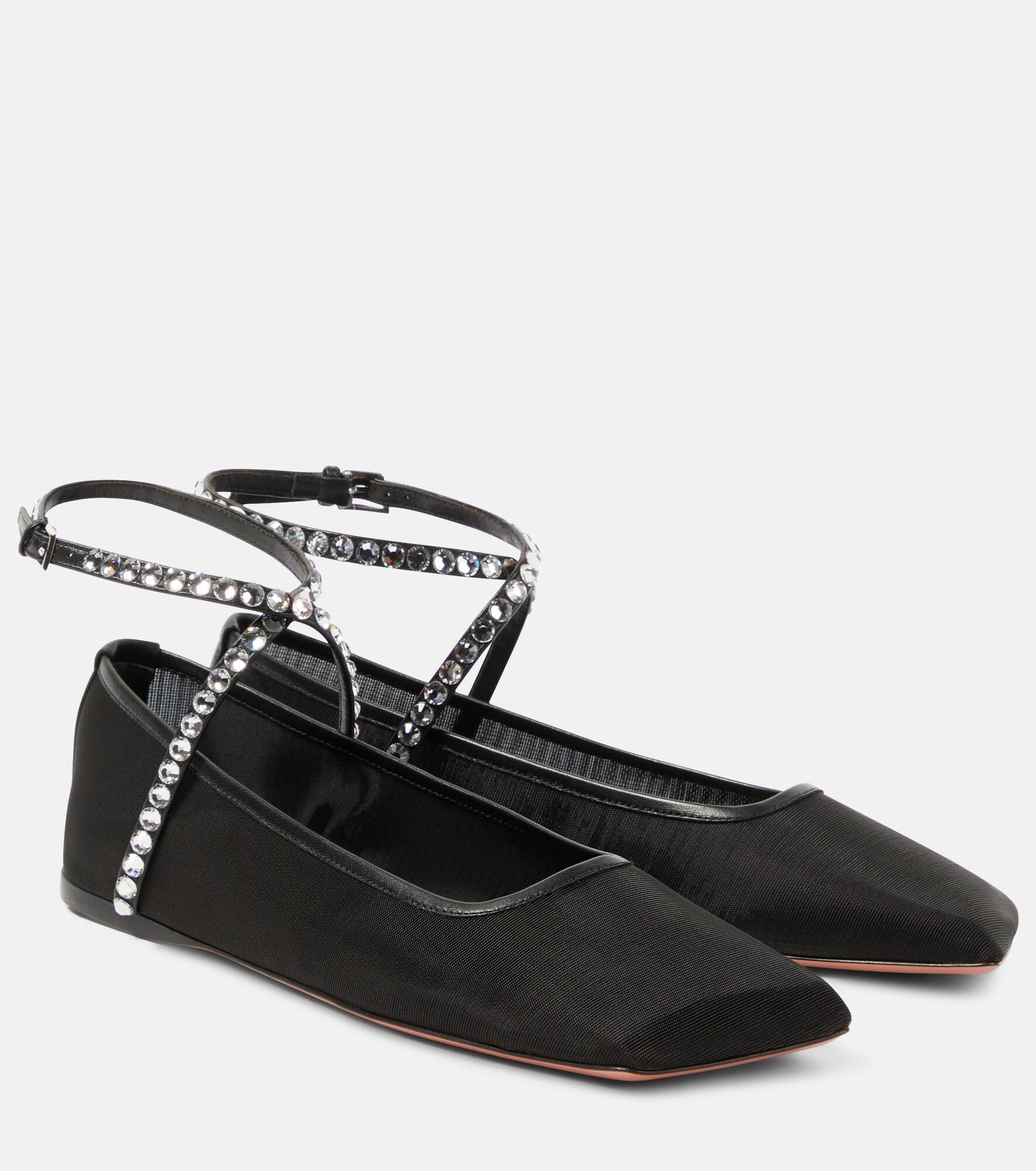 Ane crystal-embellished mesh flats