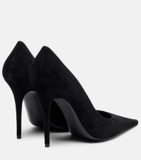 Amina Muaddi has quickly become a fashionable favorite thanks to its eye-catching and sculptural shoes. Made in Italy from suede, the Barbara pumps are finished with pointed toes and 105mm stiletto heels. Product Details - Upper: goat leather (suede) - Lining: leather - Sole: leather insole and sole - Toe shape: pointed toe - Made in Italy - Includes: shoe box, dust bag - Designer color name: Black - Item color: black - Item number: P01098738 Size & Fit - True to size - For narrow feet, we recommend trying a half size smaller - European sizes - 10,5cm-4" heel (size EU 38)