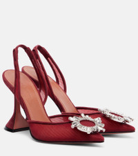 For an unforgettable entry into the ballroom, look to Amina Muaddi’s Begum slingback pumps. They're topped with the label’s signature brooch, recalling Art Deco-style sunburst mirrors on a note of refined opulence. The design itself is crafted from mesh with 95mm heels that flare out into a pyramid to provide optimal comfort. Product Details - Upper: fabric - Lining: fabric - Sole: leather insole, leather and rubber sole - Toe shape: pointed toe - Made in Italy - Includes: shoe box - Designer color name: Ruby - Item color: burgundy - Closure: elasticated strap - Item number: P01098770 Size & Fit - True to size - European sizes - 9,5cm-3.5" heel (size EU 38)