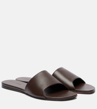 Destined for warm days, the Bianca slides from Amina Muaddi are an effortlessly versatile pair for your collection. They're made from supple nappa leather and showcase a minimalist yet refined silhouette. Product Details - Upper: leather - Lining: leather - Sole: leather insole and sole - Toe shape: round open toe - Made in Italy - Includes: shoe box, dust bag - Designer color name: Coffee - Item color: brown - Item number: P01054980 Size & Fit - Fits slightly large to size - we recommend trying a half size smaller - European sizes