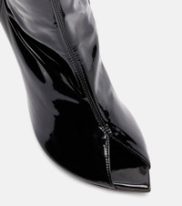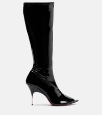 Amina Muaddi has quickly become a fashionable favorite thanks to its eye-catching and sculptural shoes. Crafted from glossy patent leather, the Bruna knee-high boots feature pointed open toes and 95mm stiletto heels with a silver-toned finish. Product Details - Upper: polyurethane - Lining: fabric - Sole: leather insole, leather and rubber sole - Toe shape: pointed open toe - Made in Italy - Includes: dust bag, shoe box - Designer color name: Black - Item color: black - Closure: zipped side - Item number: P01098741 Size & Fit - True to size - European sizes - 9,5cm-3.5" heel (size EU 38) - 36cm-14" shaft height (size EU 38) - 33cm-13" shaft width (size EU 38) - shaft width measured on largest part of boot