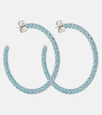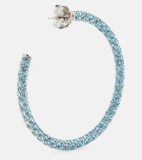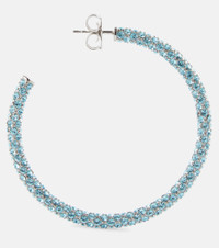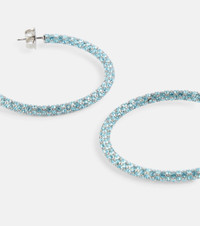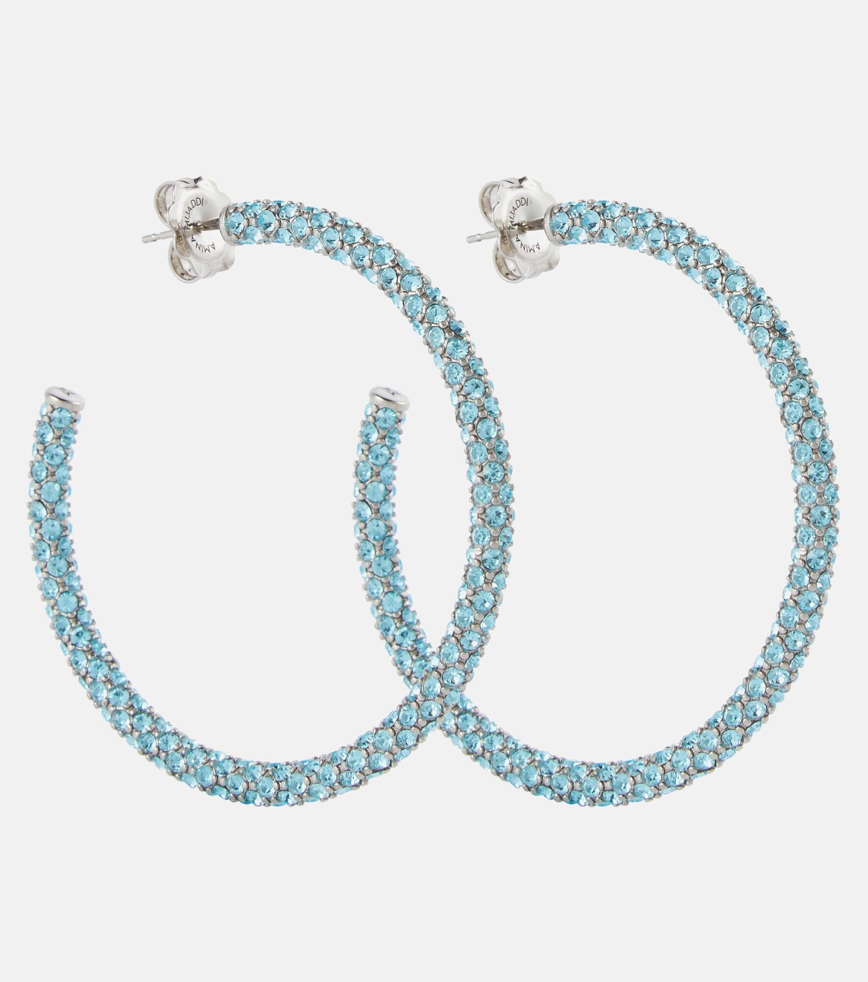 Complement Amina Muaddi's iconic Martini heels with the Cameron hoop earrings. The opulent pair are encrusted with blue bezel-set glass crystals, and secure with hammered post-fastenings through pierced ears. Product Details - Closure: butterfly-back fastening - Made in Italy - Material: brass, crystals - For pierced ears - Designer color name: Silver Base - Item number: P00688589 Size & Fit - Length 5,5cm-2" - Width 0,4cm-0"