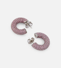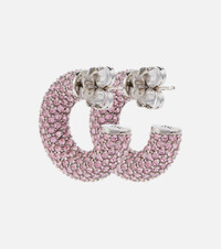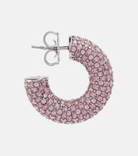 The Cameron earrings from Amina Muaddi are a classic pair of mini hoops elevated with glimmering pink crystal accents. The butterfly-fastened pair for pierced ears is made from silver-toned metal. Product Details - Material: crystals, brass - Made in Italy - Closure: butterfly-back fastening - For pierced ears - Item number: P00626645 Size & Fit - Length 2,6cm-1" - Max. width 0,6cm-0"