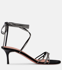Amina Muaddi has quickly become a fashionable favorite thanks to its eye-catching and sculptural shoes. Complete with 60mm heels, the Lori sandals are made from crystal-embellished suede and have lace-up straps. Product Details - Upper: leather (suede) - Lining: leather - Sole: leather insole, rubber sole - Toe shape: round open toe - Made in Italy - Includes: shoe box, dust bag - Designer color name: Black White Crystal - Item color: black - Closure: lace-up - Item number: P01054937 Size & Fit - True to size - Narrow straps - European sizes - 6cm-2.5" heel (size EU 38)