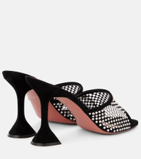 LUPITA CRYSTAL NET SLIPPER BLACK SUEDE AND WHITE CRYSTALS