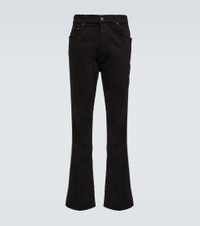 Amiri looks to nostalgic rock 'n' roll references, creating a new generation of cult pieces. These bootcut jeans are made from stretchy cotton for a close fit, with five-pocket styling, embellished trim, and flared cuffs. Product Details - Material: 6% elastomultiester, 92% cotton, 2% elastane - Pockets: five pockets - Closure: concealed buttoned front - Designer color name: Black Od - Made in the USA - Care instructions: dry clean - Item number: P00783541 Size & Fit - True to size - Mid-weight material - Stretchy fabric - Slim-leg with a flared hem - High-rise - The model in the picture is 185cm-6'1" and wearing a size 32