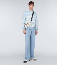 Inspired by Los Angeles streetwear culture, Amiri presents a rock’n’roll aesthetic with a luxurious slant. This cotton and cashmere-blend sweater is detailed with all-over logo jacquard and features stretchy trims for a comfortable fit. Product Details - Material: 20% polyester, 68% cotton, 12% cashmere - Care instructions: dry clean - Made in Italy - Designer color name: Blue - Item number: P00783489 Size & Fit - True to size - For a looser fit, we recommend taking one size up - Slim fit - Mid-weight material - Falls to the hip - The model in the picture is 185cm-6'1" and wearing a size M