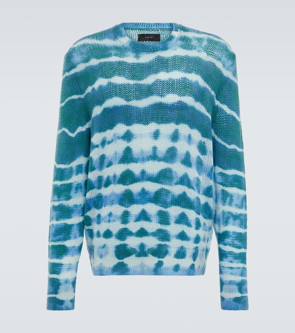 Inspired by Los Angeles streetwear culture, Amiri presents a rock’n’roll aesthetic with a luxurious slant. This tie-dyed sweater is knitted from soft cashmere with a hint of wool. Product Details - Material: 100% cashmere - Care instructions: dry clean - Made in the USA - Designer color name: Blue - Item number: P00783469 Size & Fit - True to size - Dropped shoulders - Designed for a loose fit - Mid-weight material - Falls to the hip - The model in the picture is 185cm-6'1" and wearing a size M