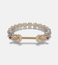 Ananya draws inspiration from mythology and symbolism to create fine jewelry that holds meaning. Meticulously crafted from 18kt yellow gold, the Chakra bracelet is a hallmark of sophistication. Dazzling diamonds, moonstones, and rubies add an opulent touch to this piece. Product Details - Material: 18kt yellow gold - Made in India - Stone I: 186 diamonds, round-cut, pave setting, VVS-VS clarity grade, G-J color grade, 1.25ctw - Stone II: 21 moonstones - Stone III: 2 ruby - Item number: P00992636 Size & Fit - Max. width 11mm-0.45" - Circumference 15cm-6" - Elasticated band
