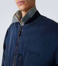 A.Presse redefines menswear through Japanese craftsmanship and American-inspired design, offering timeless and refined wardrobe staples. The Vintage bomber jacket is crafted from silk and cotton and features ribbed-knit trims. Product Details - Material: 52% silk, 48% cotton - Care instructions: dry clean - Made in Japan - Color: blue - Designer color name: Navy - Item color: blue - Lining: 85% silk, 15% nylon - Filling: 100% polyester - Trim: 100% cotton - Closure: zipped front - Pockets: snap-buttoned pockets, internal pocket - Cuff: ribbed - Hem: ribbed - Item number: P01069476 Size & Fit - True to size - Designed for a loose fit - Elasticated hem - Non-stretchy fabric - Falls to the hip - Height of model is 189cm-74.5" and wears a size 4
