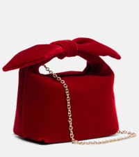 The Bow Tie Small tote bag from Aquazzura is crafted in Italy from soft velvet and owes its name to the charming ribbon that finishes the top handle. The design features a compact silhouette and a detachable chain strap. Product Details - Material: velvet - Lining: fabric, leather - Made in Italy - Designer color name: Rosso - Item color: red - Top handle, Detachable chain shoulder strap - Internal details: single compartment - Closure: magnetic fastening - Includes: dust bag - Item number: P01114116 Size & Fit - Height 12cm-4.5" - Width 17cm-6.5" - Depth 8cm-3" - Chain length 110cm-43.5" - Length of handle 17cm-6.5"