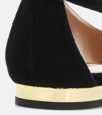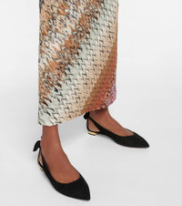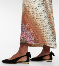 The Bow Tie ballet flats from Aquazzura are a practical yet chic solution to daytime dressing. Crafted from soft black suede, this pointed-toe pair feature cut-out detailing and tie-knots at the heel counter, while a polished golden heel adds a finishing note of glamour. Wear yours with mini hemlines for a feminine flourish. Product Details - Lining: leather - Sole: leather insole and sole - Toe shape: pointed toe - Upper: leather - Made in Italy - Designer color name: Black - Item number: P00334461 Size & Fit - Fits slightly large to size - we recommend trying a half size smaller - European sizes - 1,5cm-0.5" heel (size EU 38)