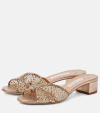 Crystal Lover 35 embellished mesh and leather mules Gold