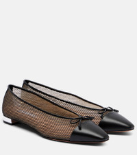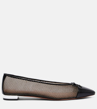 Aquazzura shoes are a labor of love: a single pair can include over 30 components, each of which is hand-assembled by skilled artisans. The Gioia ballet flats are crafted from mesh and leather and feature almond-shaped toes. Product Details - Upper: leather, rubber - Lining: leather, rubber - Sole: leather insole, leather and rubber sole - Toe shape: pointed toe - Made in Italy - Includes: shoe box, dust bag - Designer color name: Black - Item color: black - Item number: P01077793 Size & Fit - True to size - Slightly narrow at the toe - Best fit for narrow feet - European sizes - 1,5cm-0.5" heel (size EU 38)